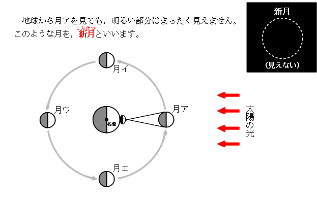 月の動き −4年生学習用− の,「月の満ち欠け」についての解説です。