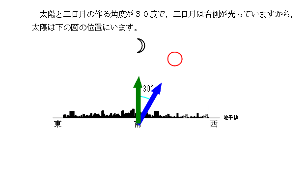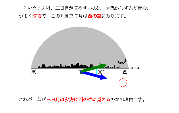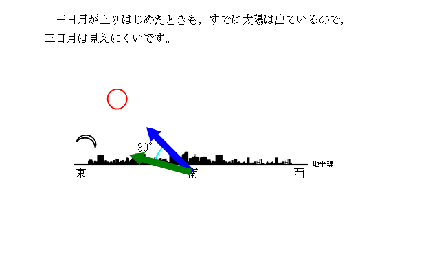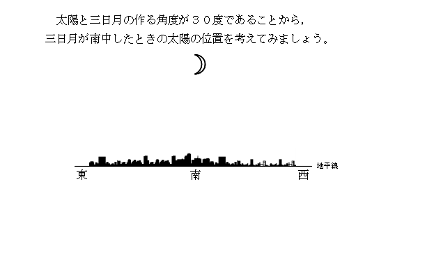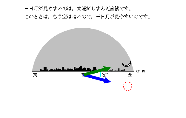 月の動き −4年生学習用− の,「三日月」についての解説です。