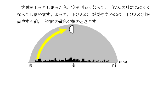 月の動き −4年生学習用− の,「見やすい月と見にくい月」についての解説です。