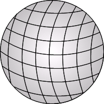 球の表面を,右の図のように碁盤の目のように細かく分けます。